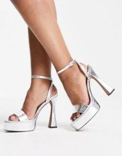 ASOS DESIGN Wide Fit – Noon – Sandali A Pianta Larga Minimal Argento Con Plateau E Tacco