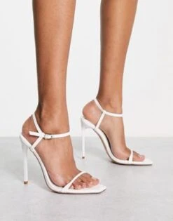 Simmi London Wide Fit – Nolan – Sandali Minimal A Pianta Larga Con Tacco Bianchi Verniciati
