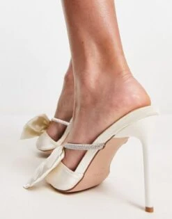 Simmi London Wide Fit – Ezlili – Sandali Da Sposa Con Tacco E Fiocco In Raso Avorio A Pianta Larga
