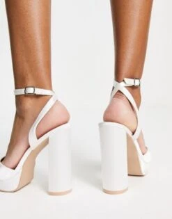 Be Mine Wide Fit Bridal – Vanyaa – Scarpe Da Sposa Con Tacco E Plateau A Pianta Larga Bianche