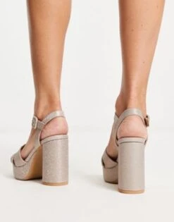 Pimkie – Sandali Color Crema Con Fascette Incrociate Con Tacco E Plateau