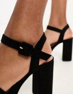 New Look – Sandali Con Tacco Largo Nero Con Listini E Nodo Sul Davanti
