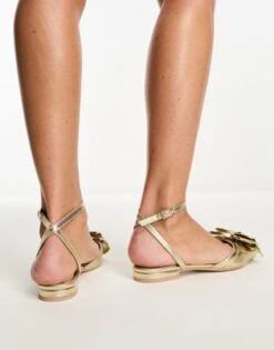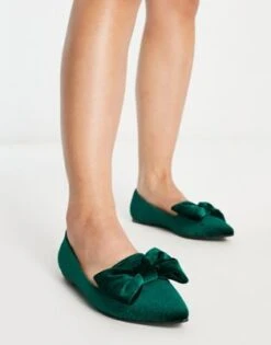 ASOS DESIGN Wide Fit – Lake – Ballerine A Pianta Larga A Punta Con Fiocco In Velluto Verde