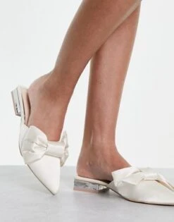 Be Mine – Alezae – Pantofole Da Sposa Aperte Dietro Color Avorio Con Fiocco Sul Davanti