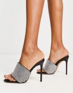 Simmi London – Jeyda – Sandali Neri Decorati Con Tacco Medio