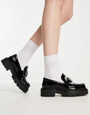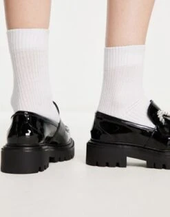 ASOS DESIGN – Maestro – Mocassini A Pianta Larga Neri Con Suola Spessa E Pannello Con Impunture