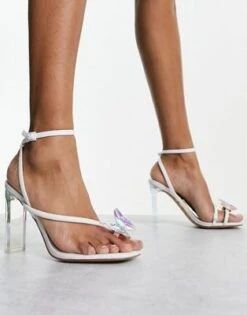 Simmi London – Sandali Con Tacco Argento Effetto Specchio Decorati