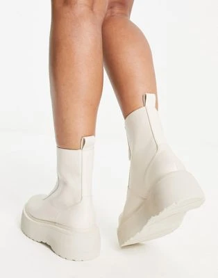 ASOS DESIGN – Amsterdam – Stivaletti A Pianta Larga Bianco Sporco Con Suola Spessa E Zip Anteriore