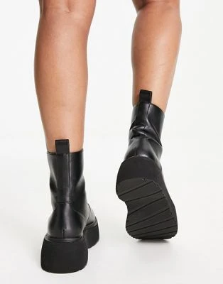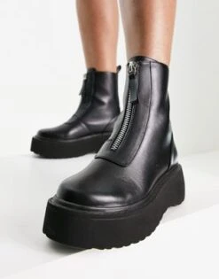 ASOS DESIGN – Amsterdam – Stivali A Pianta Larga Neri Con Zip Sul Davanti E Suola Spessa