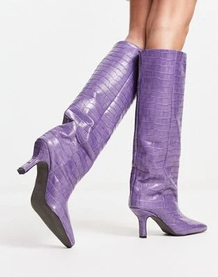 Public Desire Wide Fit – District – Décolleté A Pianta Larga Con Tacco Argento A Specchio Con Zip