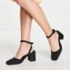 ASOS DESIGN – Saidi – Scarpe Con Tacco Medio In Velluto Rosa Con Fiocco E Cinturino Posteriore