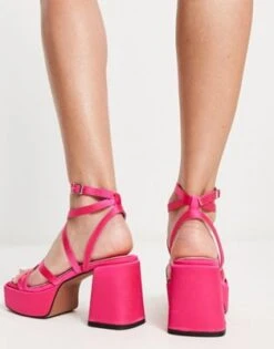Public Desire – Afternoon – Sandali Pianta Larga Beige Patent Con Tacco Largo Trasparente
