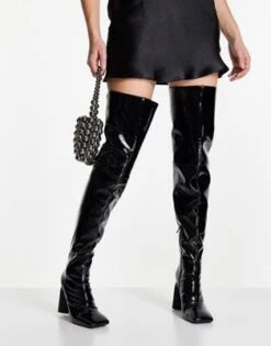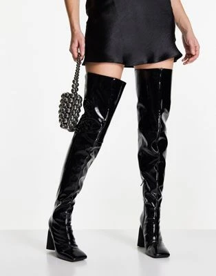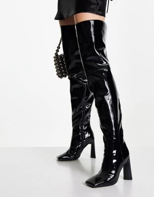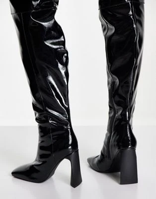 ASOS DESIGN – Carly – Stivali Al Ginocchio Con Tacco Alto Grigio Verniciato Trasparente
