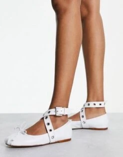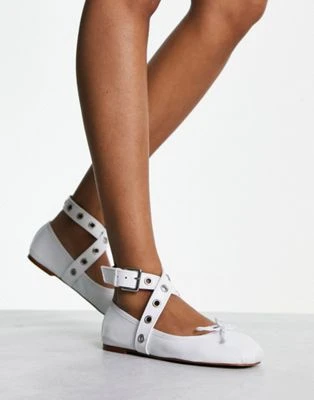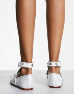 ASOS DESIGN – Legend – Ballerine Bianche Premium In Pelle Morbida Con Fascetta E Dettagli In Metallo