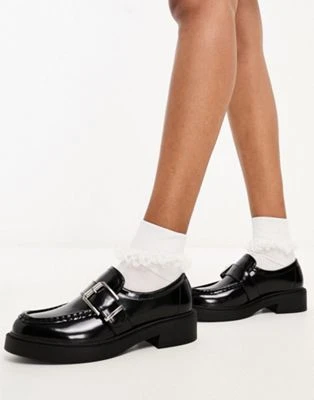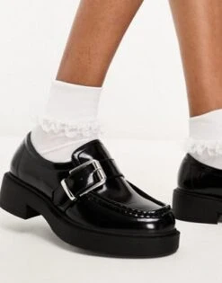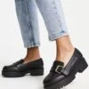 ASOS DESIGN – Maestro – Mocassini A Pianta Larga Neri Con Suola Spessa E Pannello Con Impunture