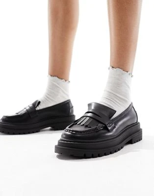 ASOS DESIGN – Maestro – Mocassini A Pianta Larga Neri Con Suola Spessa E Pannello Con Impunture