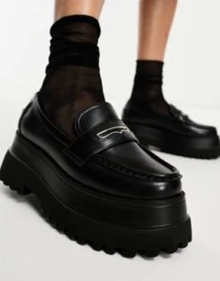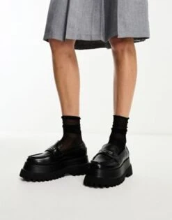 ASOS DESIGN – Maverick – Mocassini Neri Con Suola Super Spessa E Finiture In Metallo