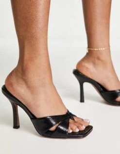 Simmi London – Sandali Con Tacco Argento Effetto Specchio Decorati