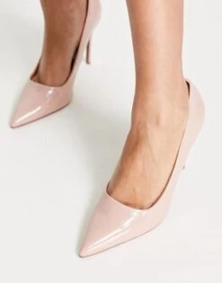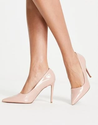 Public Desire Wide Fit – District – Décolleté A Pianta Larga Con Tacco Argento A Specchio Con Zip