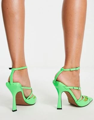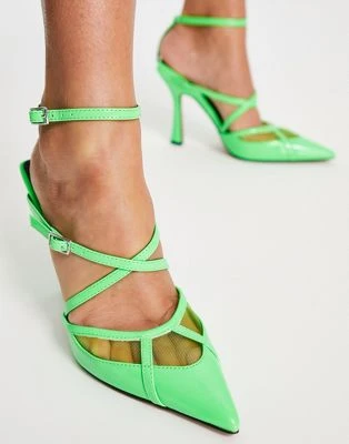 Public Desire Wide Fit – District – Décolleté A Pianta Larga Con Tacco Argento A Specchio Con Zip