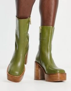 Public Desire Wide Fit – District – Décolleté A Pianta Larga Con Tacco Argento A Specchio Con Zip