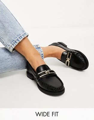ASOS DESIGN – Maestro – Mocassini A Pianta Larga Neri Con Suola Spessa E Pannello Con Impunture