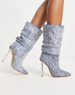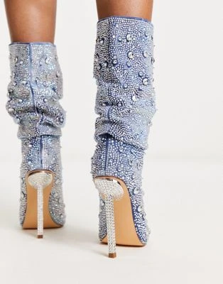 Steve Madden – Finkle – Stivali Al Ginocchio Con Tacco Color Osso Con Cinturini E Borchie
