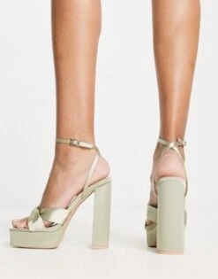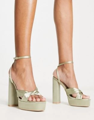 Pimkie – Sandali Color Crema Con Fascette Incrociate Con Tacco E Plateau