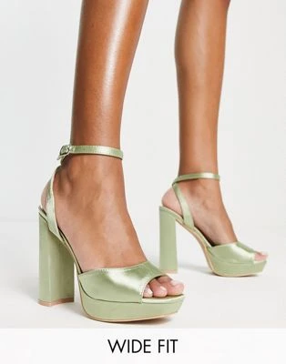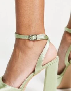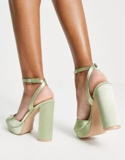 Public Desire – Viola – Sandali In Raso Verde Lime Con Plateau