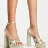 Public Desire – Viola – Sandali In Raso Verde Lime Con Plateau