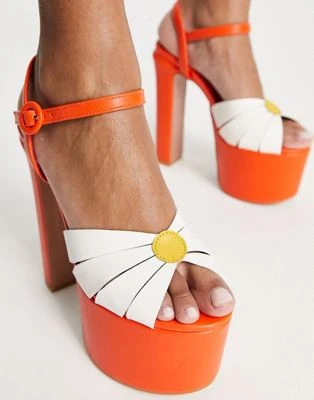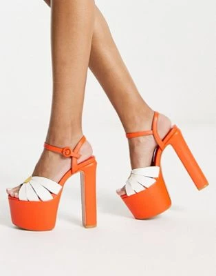 Public Desire – Viola – Sandali In Raso Arancioni Con Plateau