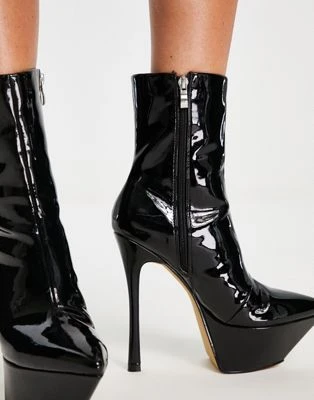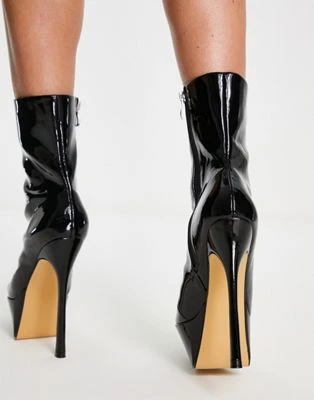 Public Desire Wide Fit – District – Décolleté A Pianta Larga Con Tacco Argento A Specchio Con Zip