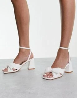 Public Desire – Veda – Sandali Con Tacco Largo Bianchi Verniciati
