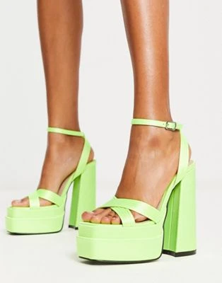 Public Desire – Viola – Sandali In Raso Verde Lime Con Plateau