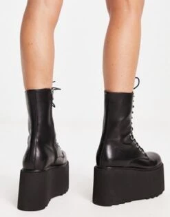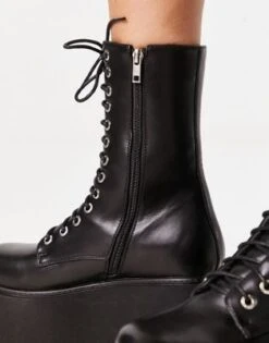 Lamoda – Stivali Alla Caviglia Stringati Neri Con Plateau – In Esclusiva Per ASOS