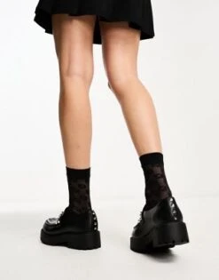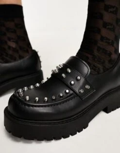 ASOS DESIGN – Maestro – Mocassini A Pianta Larga Neri Con Suola Spessa E Pannello Con Impunture