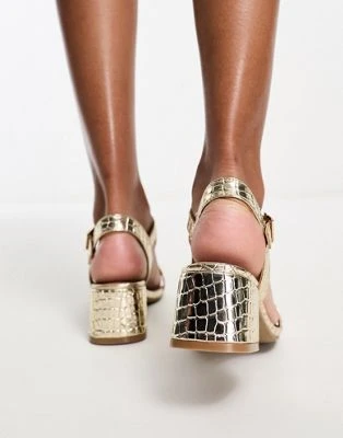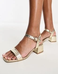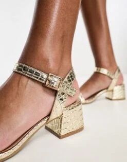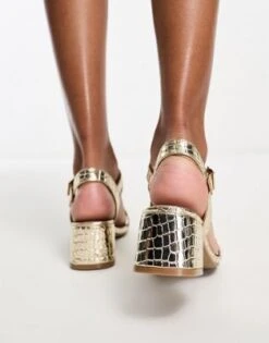 Simmi London – Inez – Sandali Dorati Con Tacco Largo Decorati