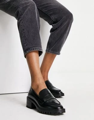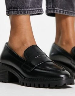ASOS DESIGN – Maestro – Mocassini A Pianta Larga Neri Con Suola Spessa E Pannello Con Impunture