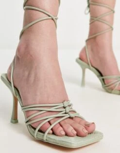 Simmi London – Sandali Con Tacco Argento Effetto Specchio Decorati