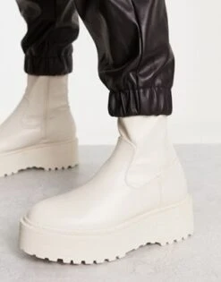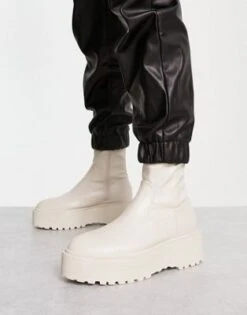 Public Desire – Pabla – Stivaletti Alla Caviglia Bianco Sporco Con Suola Spessa