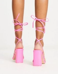 Public Desire – Viola – Sandali In Raso Verde Lime Con Plateau