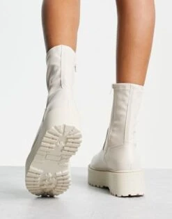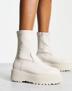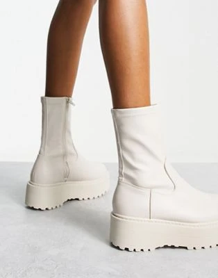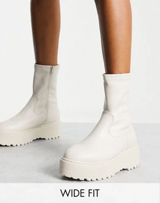 Public Desire Wide Fit – Pabla – Stivaletti Alla Caviglia A Pianta Larga Bianco Sporco Con Suola Spessa