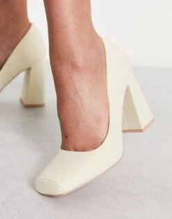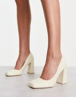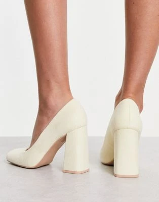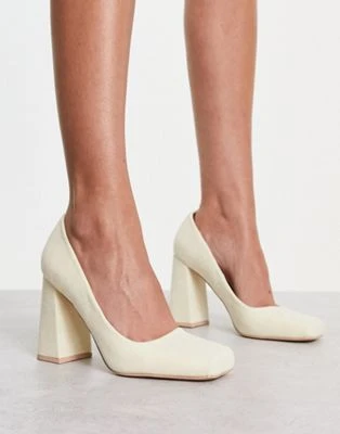Public Desire Wide Fit – District – Décolleté A Pianta Larga Con Tacco Argento A Specchio Con Zip