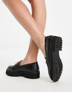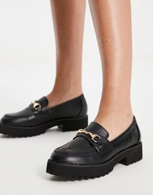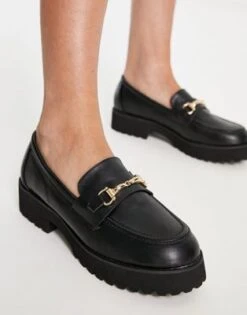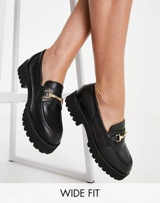 RAID Wide Fit – Empire – Mocassini Neri Con Suola Spessa E Finiture Oro