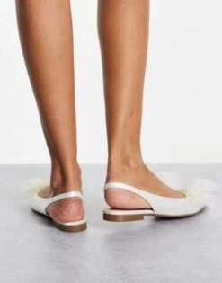 ASOS DESIGN – Lotus – Ballerine Decorate A Pianta Larga Con Cinturino Posteriore In Raso Verde