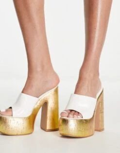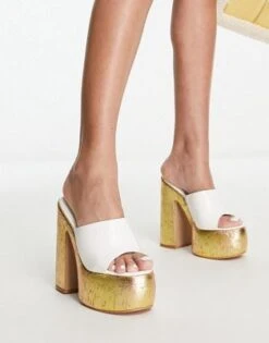 Public Desire – Veda – Sandali Con Tacco Largo Bianchi Verniciati