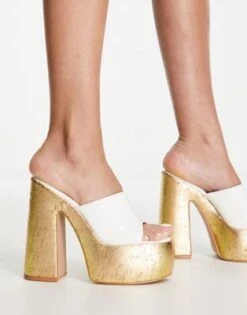 Public Desire – Afternoon – Sandali Pianta Larga Beige Patent Con Tacco Largo Trasparente