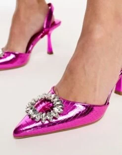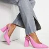 ASOS DESIGN – Saidi – Scarpe Con Tacco Medio In Velluto Rosa Con Fiocco E Cinturino Posteriore