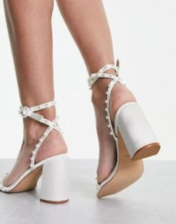 Be Mine – Naava – Sandali Con Tacco Largo Da Sposa Color Avorio Decorati Con Perle