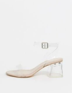 Public Desire – Afternoon – Sandali Pianta Larga Beige Patent Con Tacco Largo Trasparente